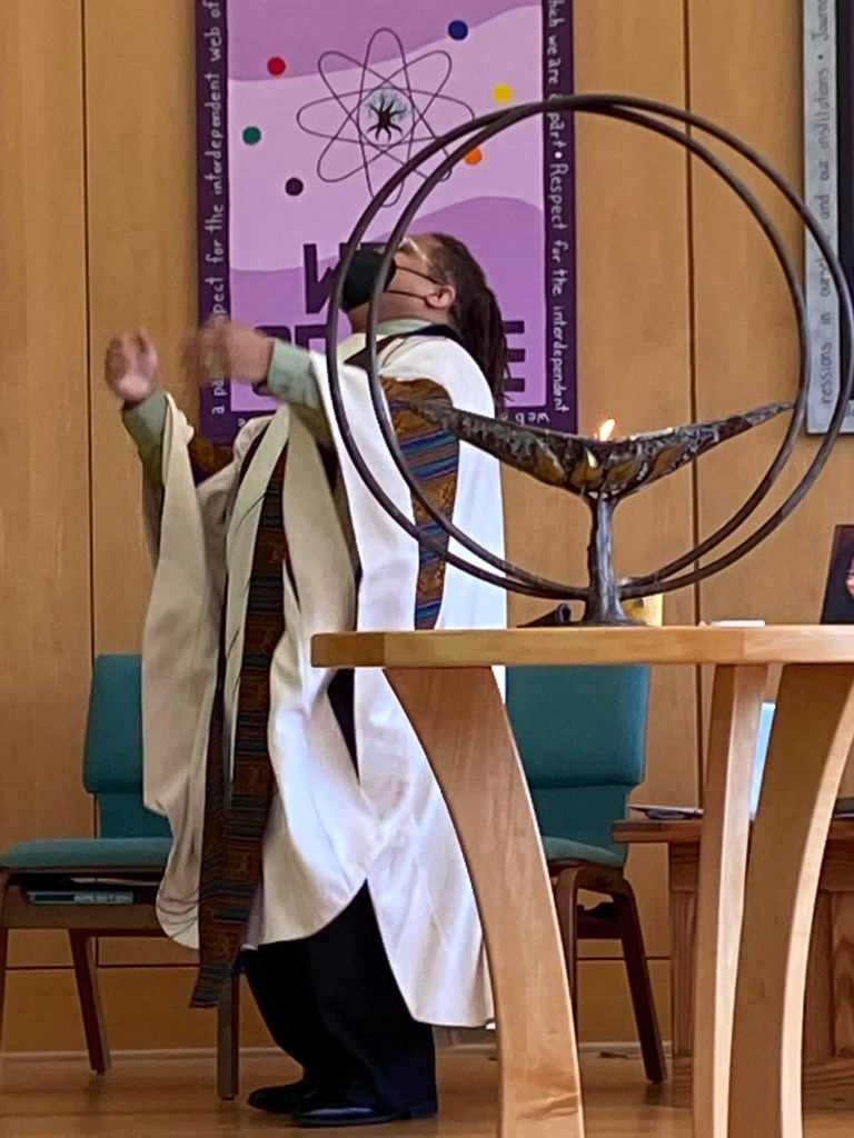 I have been a leader in worship arts and congregational life in communities in New York, Pennsylvania, Connecticut, Massachusetts, North Carolina, Georgia, and Hawaii, and have been given the opportunity to lead worship and offer theological reflection from the General Assembly main stage. For the past three years, I have coordinated programming for Finding Our Way Home, the UUA’s annual retreat for UU religious professionals of color. And in 2022, I was invited to give the annual Berry Street Lecture, the longest running lecture series in North America started by Rev. William Ellery Channing, during the UU Ministers Association’s Ministry Days (professional learning days), which was a profound honor.
