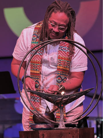 While use of the term “worship” is complicated for many UUs, I arrive clear that these moments of honoring and blessing, however we choose to name them, capture body, mind, and spirit most when they are dynamic, love-centered, and representative of our full humanity. Feeling a sense of belonging in our congregations isn’t just about how we greet one another, which programs we offer, or how we support new leaders, although all of these things are meaningful considerations for a community invested in its own thriving. It matters just as much how connected and cared for people feel in ritual space, even and especially if folks don’t realize going in that that’s what they need. Connection and care make way for attentiveness, openness, and possibility and are central to my work as a minister in these contexts.